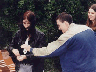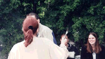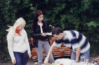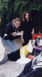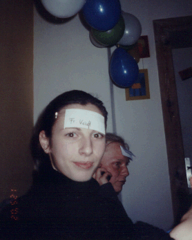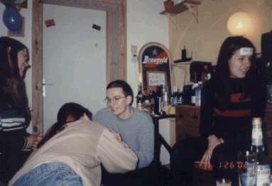 Nach zweieinhalb Jahren mieser Schufterei bei der Deutschen Bahn hatten wir uns unsre Abschlussfete redlich verdient! Jawohl! Und wenn uns die Bahn schon nicht angemessen verabschiedete, mussten wir uns also selber feiern. Mit dem Abschlusszeugnis in der Tasche konnte man endlich wieder beruhigt feiern ohne an bevorstehende Prüfungen zu denken. Diese lagen nun hinter uns. Am Vormittag war man das letzte Mal bei der Deutschen Bahn im DZB eingekehrt um die druckfrischen Zeugnisse mit stolz geschwellter Brust entgegen zu nehmen. Das DZB hatte alle Kosten und Mühen gescheut um die Feier angemäß??? zu gestalten, und hatte ganze drei Teller mit Keksen aufzufahren. Jeder bekam genau abgemessen ein Glas Sekt und eine Rose!!!! Wahrscheinlich wurde schon für diese entstandenen Kosten ein Arbeitsplatz beim DZB abgebaut?? Auch Frau Pfeiffer ließ es sich nicht nehmen, uns zu verabschieden. Sichtlich gerührt, war sie, als wir ihr den Blumenstrauß und eine Karte überreichten! Den hatte sie sich auch wirklich verdient. Sicherlich die Seminarstunden waren immer die schrecklichsten, besonders Freitag Nachmittag war kaum einer von uns mehr im aufnahmefähigen Zustand. Aber wir haben auch viel gelacht...besonders bei den Rollenspielen. Nach der äußerst "stilvollen" Zeremonie sehnte sich jeder nach dem Abend und unserer Abschlussfete. Man hatte sich viel vorgenommen. Conny und ich haben schon vorher vereinbart, uns das mühsam angelernte Wissen für die Abschlussprüfung konsquent wegzudrinken. Und dies hat dann auch ganz gut geklappt......